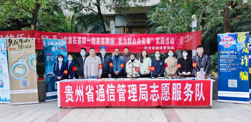 10月23日时值周末,省通信管理局志愿服务队及贵阳市通信运营企业员工充分发挥信息通信行业从业人员专业知识能力,进入亨特小区开展防范电信诈骗宣传及手机使用服务咨询等相关服务。