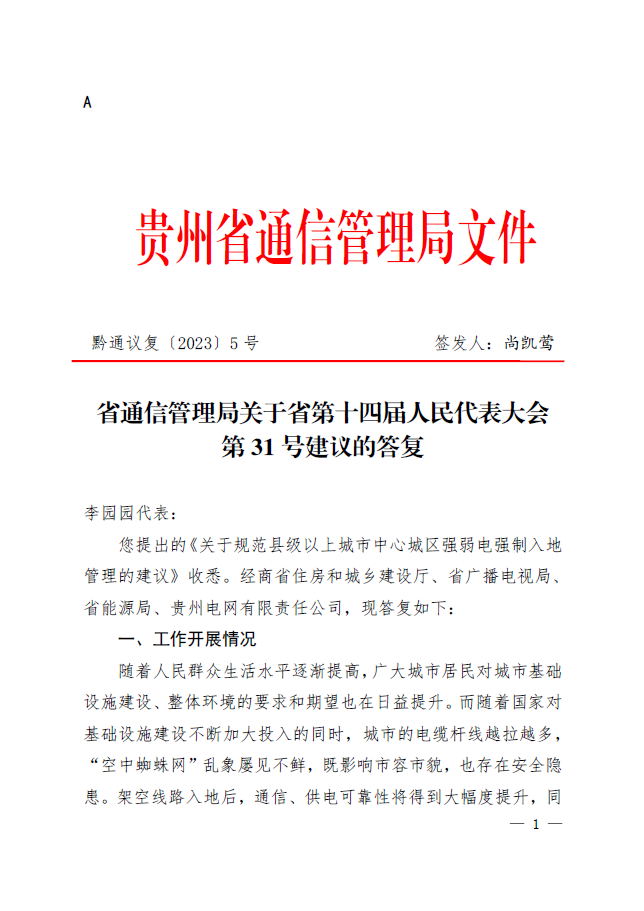 省通信管理局关于省第十四届人民代表大会第31号建议的答复