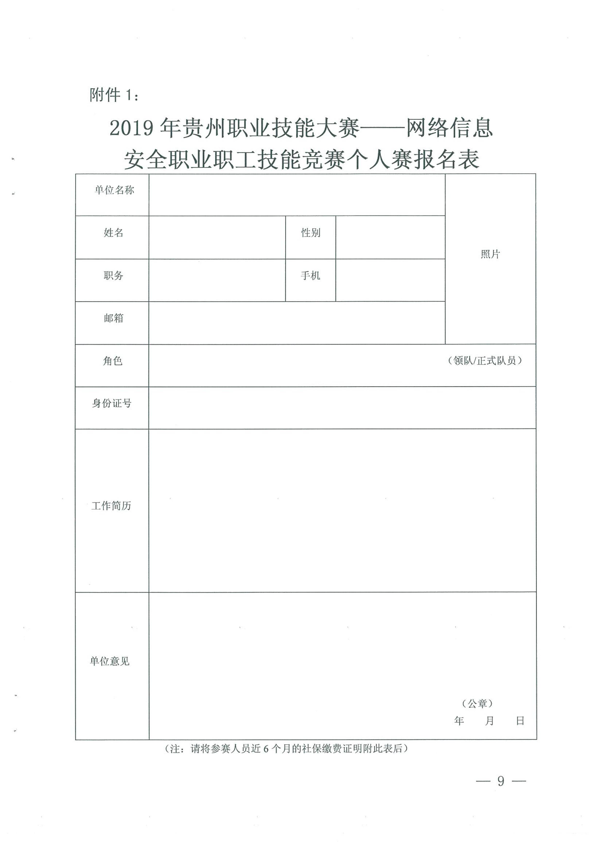 附件1-2019年贵州职业技能大赛——网络信息安全职业职工技能竞赛个人赛报名表.docx