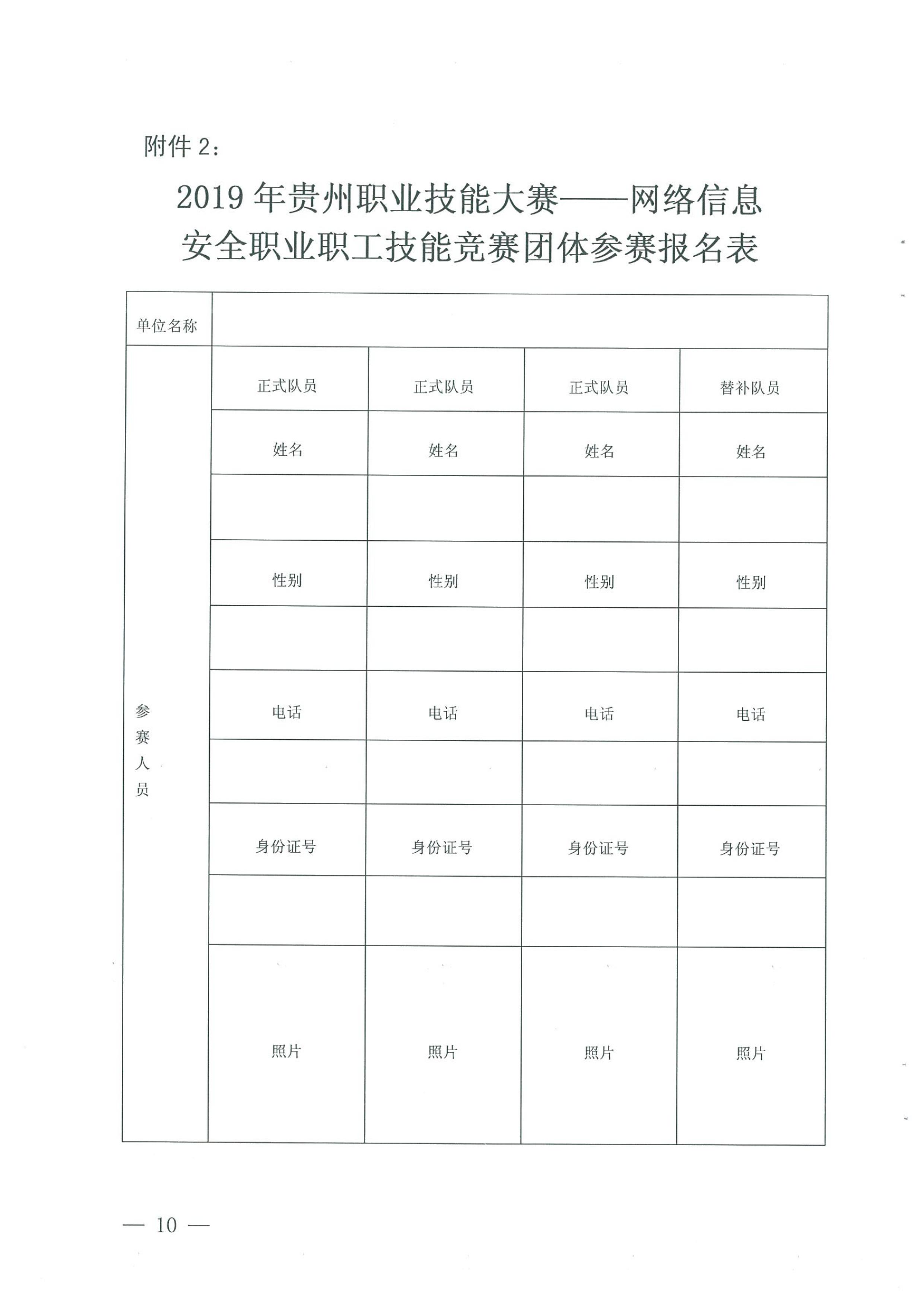附件2-2019年贵州职业技能大赛——网络信息安全职业职工技能竞赛团体赛报名表.docx